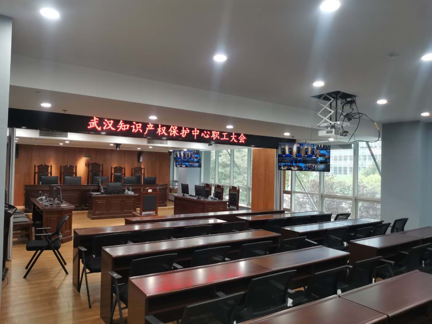 法院专网或互联网实现远程提讯、移动微法庭。